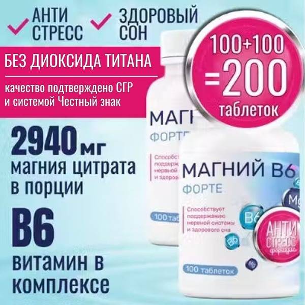 Myopharm Magnesium B6 Forte, trusted by Russian pharmacies for over 6 years, combines magnesium citrate and vitamin B6 for superior stress relief and sleep improvement. Each tablet delivers 735mg of magnesium citrate and vitamin B6, providing a synergistic effect for enhanced efficacy. Magnesium, crucial for over 300 bodily functions, supports bone health, regulates heart rhythm and blood pressure, stabilizes blood sugar, relieves muscle cramps, and reduces joint pain. Vitamin B6 is essential for amino acid metabolism, hemoglobin production, and nervous system regulation, also contributing to healthy skin, hair, mood, and sleep. Myopharm Magnesium B6 Forte's high potency formula helps reduce stress, improve nervous system function, boost energy levels, sharpen memory and concentration, enhance sleep quality, strengthen immunity, and support cardiovascular health. Experience the benefits of this powerful combination – order your 200-tablet pack today. This is the best magnesium b6 supplement for sleep and managing stress and anxiety. These high-potency magnesium b6 tablets are a great choice for overall health.