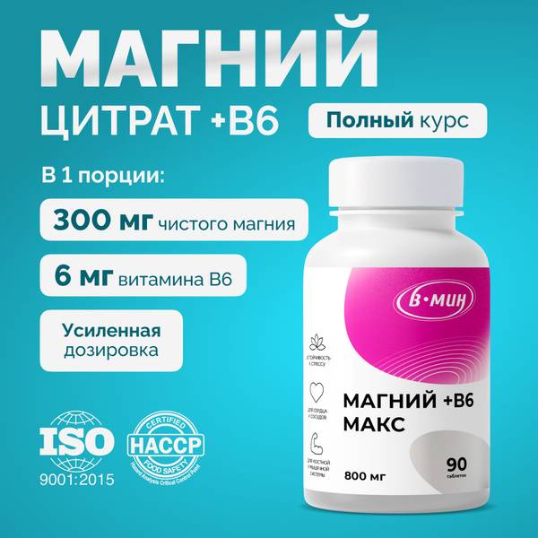 Magnesium B6 Max tablets are uncoated, ensuring easy absorption and guaranteeing the absence of titanium dioxide. Manufactured in Russia by V-MIN, a leading health and wellness company, our product adheres to stringent ISO and HACCP quality standards. Choose Magnesium B6 Max for a natural and effective way to support your overall well-being and manage stress.
