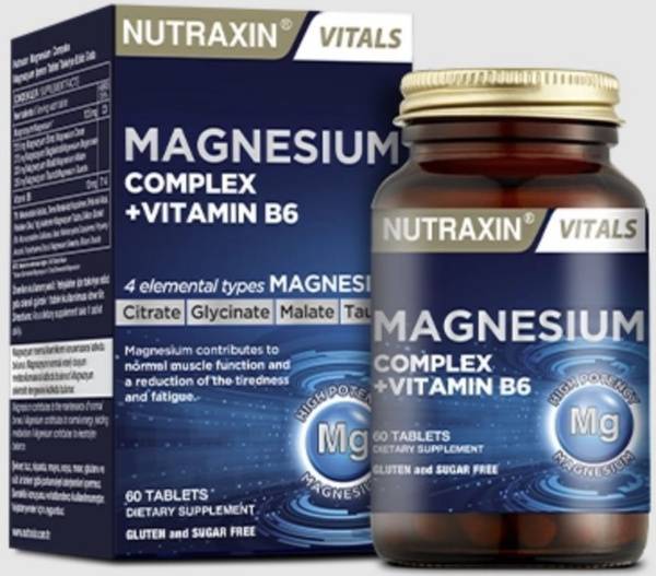 Magnesium supplement, Vitamin B6 supplement, Magnesium bisglycinate, Magnesium malate, Magnesium citrate, Magnesium taurate, muscle cramps, stress relief, anxiety relief, sleep aid, heart health, bone health, metabolic health, mood booster, German formula, high absorption, bioavailable magnesium, Nutraxin