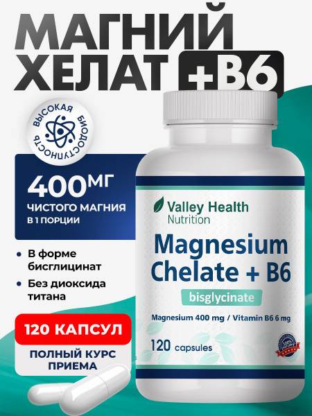 Valley Health's Magnesium B6 Chelate (400mg) is a highly bioavailable form of this essential mineral, crucial for over 300 biochemical processes. Support healthy heart function, muscle health, and nervous system function with this superior absorption supplement. Ideal for active individuals and those seeking to address magnesium deficiencies, our chelated magnesium ensures maximum benefit.