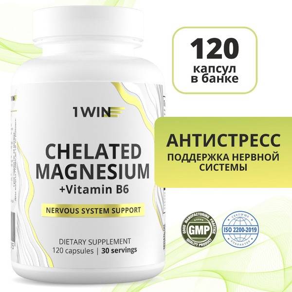 Keywords: Magnesium Bisglycinate, Vitamin B6, Magnesium, B6, vegan capsules, stress relief, sleep aid, sleep support, heart health, cardiovascular health, emotional balance, natural supplement, high absorption, bioavailable magnesium, 1WIN, 120 capsules, vegan, GMP, ISO