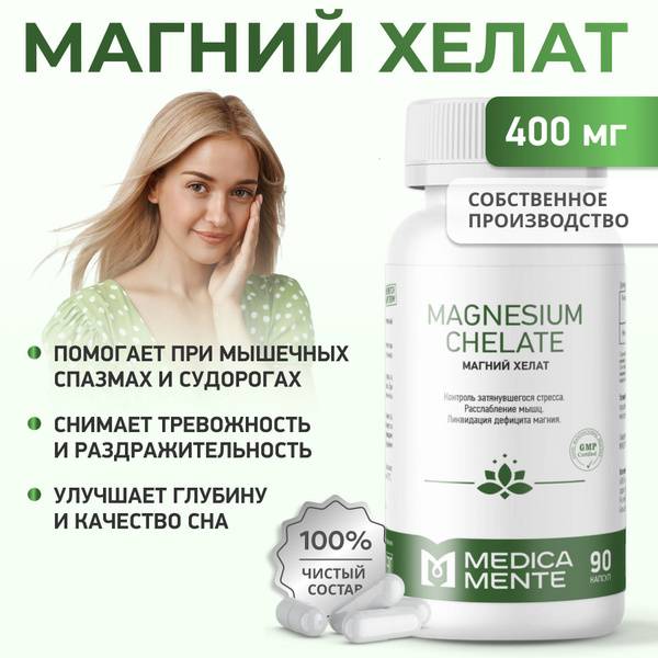 Medica Mente Magnesium Chelate 400mg provides superior support for stress, anxiety, and overall well-being. This highly absorbable chelated form minimizes digestive upset, allowing for effective high-dose supplementation without the risk of common side effects like diarrhea. Magnesium is crucial for healthy cardiovascular function, muscle health, bone strength, blood sugar regulation, and blood pressure stabilization. It also plays a vital role in supporting emotional balance, acting as a natural mood stabilizer. Our supplement is ideal for managing stress, panic attacks, tremors, muscle spasms, and sleep disturbances. Manufactured in Novosibirsk, Russia, and adhering to stringent quality standards, Medica Mente Magnesium Chelate is a pure and effective supplement, free from anti-caking agents, titanium dioxide, and other harmful additives. Its quality and safety are verified by state registration and the "Honest Sign" marking. Take 1-3 capsules daily with meals for optimal results. Experience the Medica Mente difference – support your health naturally every day.