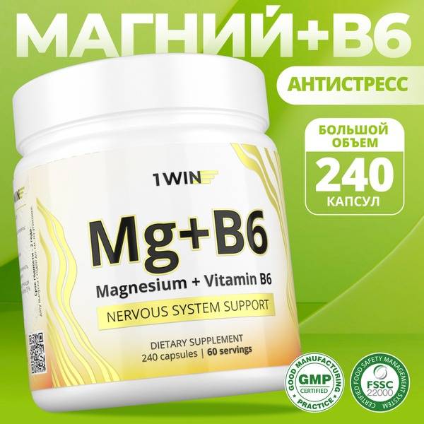 Combat stress, fatigue, and muscle tension with 1WIN Magnesium Citrate + Vitamin B6. This high-bioavailability formula provides essential magnesium in its easily absorbed citrate form, enhanced by Vitamin B6 for optimal utilization. Magnesium deficiency, often caused by stress and overexertion, can lead to irritability, fatigue, insomnia, muscle spasms, and cardiovascular issues. Our supplement helps restore emotional balance, strengthen the nervous system, and promote restful sleep. Experience reduced anxiety, improved cardiovascular health, and increased energy levels. Perfect for managing the demands of intense physical or mental activity. Take 2 capsules twice daily for one month (240 capsules per bottle – ideal for couples). Support your well-being with the power of magnesium and vitamin B6.