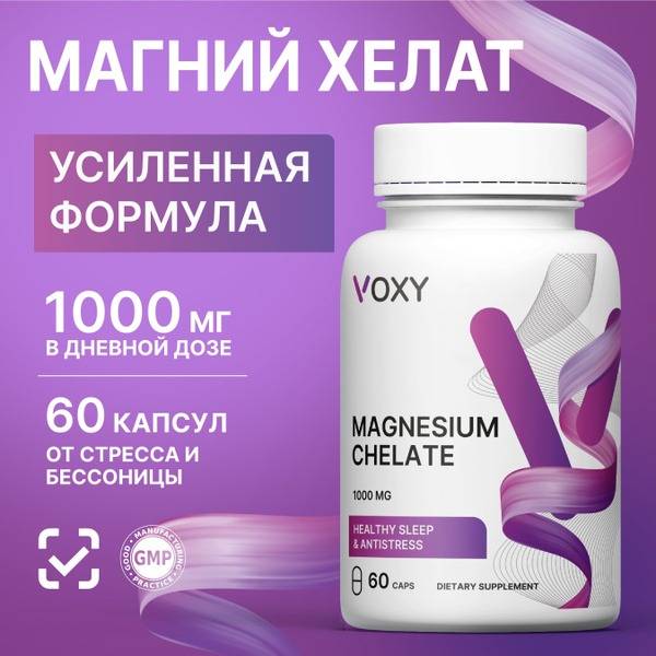 Description: VOXY Magnesium Glycinate 1000mg offers superior absorption and effectiveness compared to citrate or malate forms. This high-quality supplement supports nervous system health, reduces stress and anxiety, promotes restful sleep, and may help alleviate muscle tension and cramps. Magnesium glycinate (bisglycinate) is easily absorbed, addressing symptoms of magnesium deficiency such as insomnia, hypertension, anxiety, headaches, and muscle cramps. Unlike some magnesium B6 combinations, our formula avoids potential B6 allergies. Beneficial for cardiovascular health, it supports healthy heart rhythm and circulation. This potent 1000mg dose (60 capsules) also aids calcium absorption and contributes to bone health. It may also support improved mood and healthy digestion. Experience the potential benefits of increased energy levels and reduced menstrual symptoms. Choose VOXY - a high-quality, domestically produced alternative to leading US, Japanese, Korean, and Turkish brands. Compatible with other supplements and multivitamins. Always consult a healthcare professional before starting any new supplement regimen.