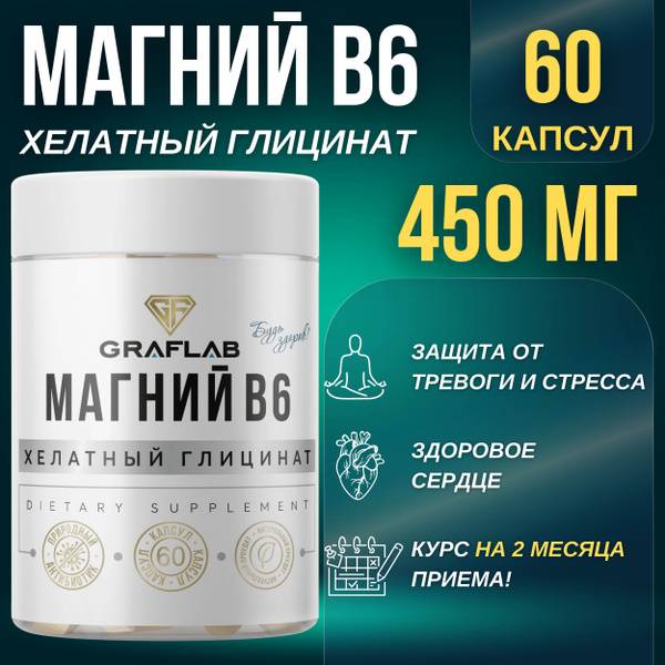GraFLab Magnesium Glycinate with Vitamin B6 is a premium nutritional supplement designed to support your nervous system and overall well-being. Formulated for adults seeking stress relief, improved sleep, and muscle relaxation, this unique blend offers superior absorption and effectiveness.