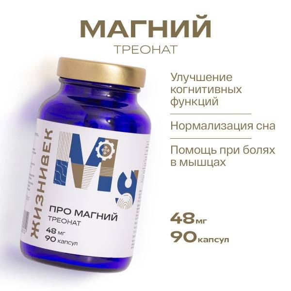 Magnesium threonate, magnesium supplement, cognitive function, stress relief, anxiety relief, sleep improvement, muscle recovery, migraine relief, memory enhancement, focus, concentration, brain health, Zhiznevek, dietary supplement, high bioavailability magnesium, stress management, sleep aid, muscle pain, immune support, Russian supplement manufacturer.