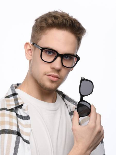 Description: HAVVS sunglasses offer stylish design and a versatile frame shape suitable for both men and women. These innovative clip-on sunglasses feature removable magnetic lens attachments. The dark plastic clip-on lenses attach securely to the main frame via magnets, sitting directly over the existing lenses. These clip-ons lack temple arms for seamless transition. Enjoy the convenience of everyday wear, effortlessly removing the magnetic lenses when needed, maintaining a sleek aesthetic. The sunglasses come standard with clear lenses, easily replaceable with prescription lenses if desired. The magnetic clip-on lenses provide polarization, protecting your eyes from harmful UV rays, reducing glare and reflections, and enhancing contrast and clarity for superior outdoor comfort. A complimentary case is included (case color and style may vary).