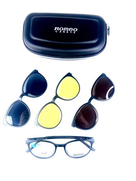 Experience the ultimate in versatile eyewear with the Romeo R25586 C1 magnetic clip-on frame. This stylish and lightweight frame is crafted from eco-friendly materials, resistant to high temperatures, and incredibly comfortable. The set includes the Romeo frame, a protective case, and three magnetic clip-on lenses: polarized grey sun lenses, polarized brown sun lenses, and yellow driving lenses. Upgrade your vision with effortless style and superior protection.