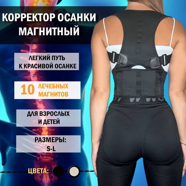 This magnetic posture corrector provides comprehensive support, gently straightening your back and relieving pain and stiffness. Featuring therapeutic magnets along the spine, it stimulates blood circulation, relaxes muscles, and improves posture. The sturdy, adjustable back brace is comfortable enough for everyday wear, including during sports.