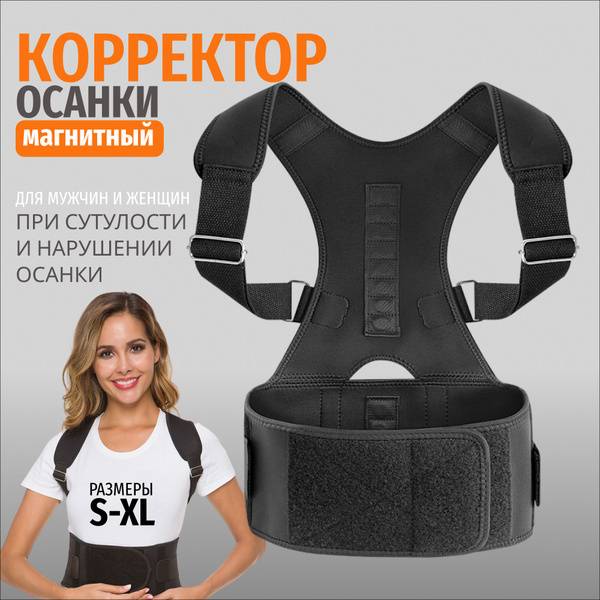 The back brace fastens under the bust, preventing pressure on the abdomen and ensuring unrestricted breathing. It's also hypoallergenic. This powerful orthopedic support brace promotes spinal health and confident posture. Widely used in orthopedics, it's suitable for both men and women. The shoulder straps gently draw back slumped shoulders, stabilizing the lumbar and thoracic spine, while the supportive belt relieves lower back strain. Therapeutic magnets along the spine stimulate blood circulation and relax muscles.