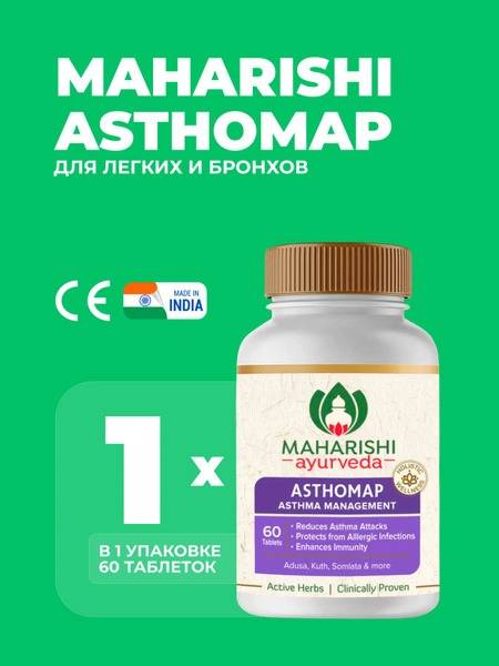 Keywords: Asthomap Maharishi, Asthomap, Ayurvedic medicine, respiratory health, bronchitis, asthma, allergies, cough relief, chronic cough, emphysema, pulmonary eosinophilia, immune support, mucolytic, antihistamine, herbal remedy, 60 tablets, Ayurvedic treatment, respiratory support