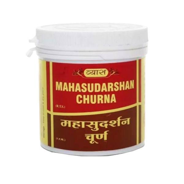Description: Mahasudarshan Churna, a 100g Ayurvedic herbal remedy from Vyas, is a potent blend of herbs, spices, and minerals renowned for its immune-boosting and detoxifying properties. Traditionally used to combat infections, cleanse the body of toxins, and improve overall well-being, this powerful formula offers potent anti-inflammatory, antibacterial, and antimicrobial actions. Effective in supporting recovery from food poisoning, alcohol intoxication, colds, flu, gastrointestinal infections, and fever, Mahasudarshan Churna is a trusted Ayurvedic solution for promoting health and vitality. Made in India by Vyas, a reputable manufacturer of high-quality Ayurvedic products, this 100g pack is conveniently sized for home or travel use.