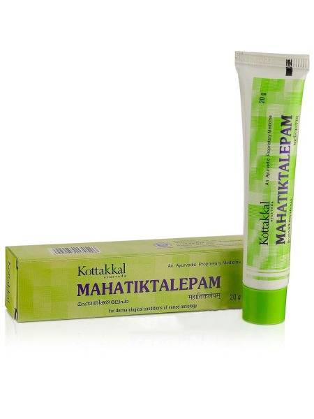 Mahatiktalepam, a 20g Ayurvedic skin cream from Arya Vaidya Sala Kottakkal, offers potent antiseptic and antibacterial properties for effective relief from a wide range of skin conditions. This soothing cream deeply moisturizes and softens, promoting healthy skin regeneration. Beyond cosmetic concerns, skin problems often cause discomfort including itching, flaking, pain, and tightness. Mahatiktalepam provides powerful relief from these symptoms. It's highly effective against acne, pimples, viral and parasitic skin infections, herpes, ringworm, scabies, and more. Protecting your skin's barrier function is vital for overall health. This powerful cream helps restore that barrier, shielding your body from environmental stressors. Indications include wounds, eczema, psoriasis, acne, blemishes, sunburn, and various infectious skin diseases. Experience the restorative power of traditional Ayurveda with Mahatiktalepam.
