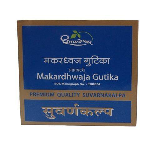 Description: Makardhwaja Gutika Dhootapapeshwar is a potent Ayurvedic herbal formulation renowned for its rejuvenating properties. It addresses a range of concerns, including premature aging, fever, digestive disorders, Vata, Pitta, and Kapha imbalances, cardiovascular issues, low libido, weakened immunity, and dyspepsia. This powerful formula supports cardiovascular health, gastrointestinal function, and strengthens the immune system, promoting overall well-being and vitality.