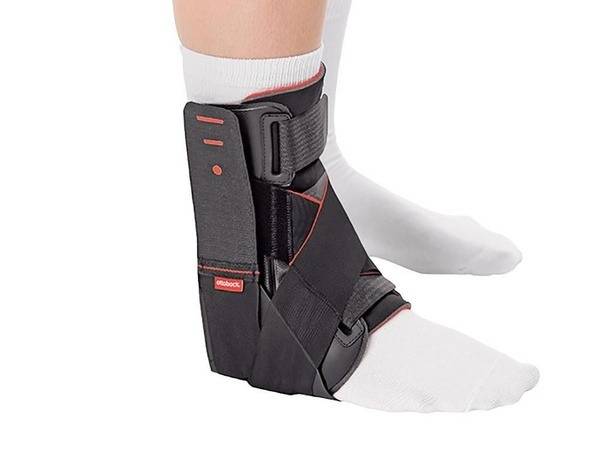 The Malleo TriStep is used with all modules: the plastic plantar splint is attached to the base bandage. The plantar splint, with an additional pronation strap, immobilizes the foot in a neutral position with slight pronation. This provides necessary ankle stabilization, accelerates the subsidence of inflammation, and stimulates initial repair processes. Weight-bearing on the injured foot is permitted only in the absence of significant pain; otherwise, crutches should be used. The plantar splint is worn continuously, day and night, to maintain a neutral foot position. The orthosis cannot be used with footwear. The patient can perform pain-free movements of the foot and toes.