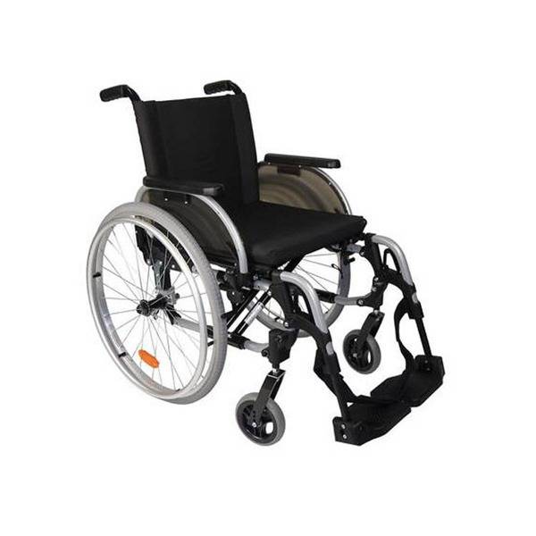 Description: The Start indoor manual wheelchair is suitable for users with varying activity levels. Its foldable, modular, three-tube, cross-shaped design offers exceptional adjustability. The drive wheel adapter and front wheel fork allow for customized wheelbase and seat height adjustments (both front and rear), ensuring optimal user positioning. Features include a height-adjustable footrest, anti-tip device, and comfortable cushion.