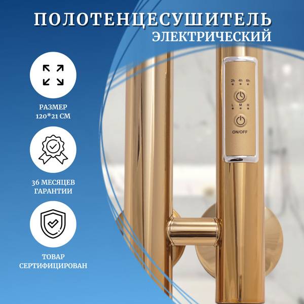 Elevate your bathroom with the Margroid Inaro-4 electric towel warmer, a stylish and functional addition to any modern space. This 1200 x 210 mm model boasts a luxurious gold finish that complements contemporary designs.