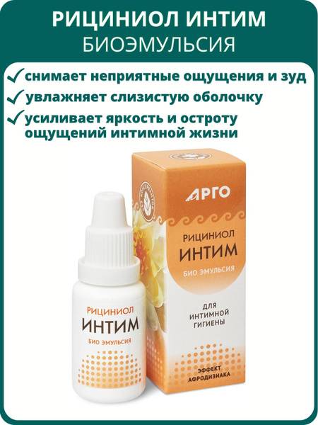 Riciniol Intim is a natural intimate hygiene emulsion with aphrodisiac properties. This versatile formula contains a unique complex of bioactive substances, primarily fatty acids. These fatty acids support the integrity and functionality of skin and mucous membranes, intensely nourishing and hydrating them. They promote the formation of strong, healthy tissues, increase elasticity, and create a natural barrier against pathogens and environmental aggressors. Riciniol Intim's fatty acids are easily absorbed, quickly relieving discomfort caused by dryness, repairing damaged areas, and reducing infection risk. Natural patchouli essential oil provides antiseptic, anti-inflammatory, and deodorizing benefits, alongside a pronounced aphrodisiac effect—enhancing libido and increasing blood flow to intimate areas. Its soothing aroma promotes relaxation, relieves stress, and revitalizes. Daily use strengthens both male and female intimate health, harmonizes relationships, and supports sexual function, even in later life. Suitable for both partners, Riciniol Intim offers daily intimate care, preventing irritation and inflammation, and enhancing sensual experiences. 15ml bottle. Avoid use during pregnancy or with known allergies to ingredients. A patch test is recommended before first use.