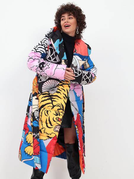 Designed for versatile style, the MARIMI jacket features a flattering oversized, straight cut, making it suitable for multiple sizes and body types. It's perfect for women of all ages, including expectant mothers, offering a comfortable and stylish maternity option. The generous length extends below the knees, providing ample coverage and protection.