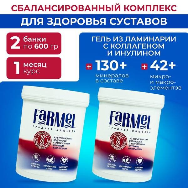 Farmel, seaweed gel, joint pain relief, cartilage regeneration, osteoporosis prevention, colon cancer prevention, digestive health, weight loss, skin health, wound healing, inulin, collagen, fucoidan, iodine, Okhotsk Sea, natural supplement, dietary supplement, bioactive gel, all-natural, joint support, nervous system support, bone health supplement, gut health, weight management supplement, skin care supplement.