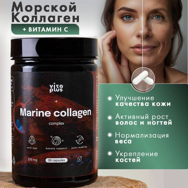 Experience the transformative power of VITA PLUS Marine Collagen Capsules with Hyaluronic Acid and Vitamin C. This potent blend supports healthy skin, hair, and nails, promoting elasticity, tone, and texture. Vitamin C's powerful antioxidant properties protect cells from environmental damage, while marine collagen peptides contribute to collagen production for skin, hair, and nails. Specifically formulated to combat the visible signs of aging in both men and women, our marine collagen also benefits joint health. As a type II collagen, it supports joint and ligament function, aiding recovery from injuries, reducing inflammation and pain, and improving mobility. Collagen naturally declines with age, increasing the risk of osteoarthritis. Our premium, easily-absorbed, peptide collagen – unprocessed by high heat or chemicals – helps replenish this vital protein, maintaining cartilage health and supporting optimal joint function and mobility. Choose VITA PLUS for superior joint support and radiant beauty from within.