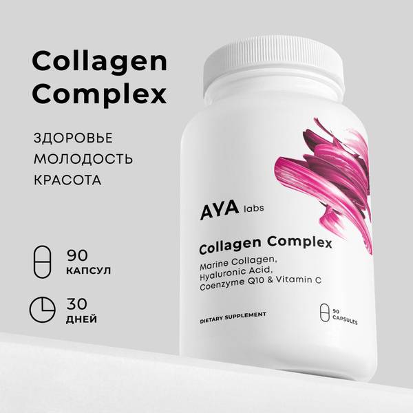 AYA Labs Collagen + Hyaluronic Acid + Vitamins is a comprehensive supplement supporting joint health and beauty. This powerful blend of marine collagen, hyaluronic acid, and essential vitamins benefits both men and women, particularly those with active lifestyles or involved in regular physical activity. Collagen, a vital protein making up a third of the body's protein, is crucial for skin elasticity, bone health, nail strength, cartilage, joint function, and blood vessel health. It aids tissue repair and regeneration, improves blood vessel elasticity, and strengthens bones. Our hydrolyzed collagen is highly bioavailable, ensuring rapid absorption and utilization by the body for optimal tissue rebuilding – essential for joint recovery. Daily intake promotes youthful skin, reduces wrinkles, strengthens hair and nails, slows aging, and supports bone, ligament, and joint health. It also contributes to weight management, sleep quality, stamina, and healthy digestion. Hyaluronic acid, a key component of connective tissue, attracts water to the joints, lubricating and protecting them from wear and tear – crucial for individuals with physically demanding routines. It also boosts collagen and elastin production, combatting dryness and sagging skin. For optimal absorption, take with plenty of water. This convenient capsule formula makes hydration easy. Dosage: 3 capsules daily for one month. Repeat as needed. Contraindications: Individual intolerance, pregnancy, breastfeeding. Consult a doctor before use. Storage: Store in a cool, dry place away from direct sunlight, out of reach of children. Temperature below 25°C and humidity below 75%. Keep in original packaging. Capsule size: 535mg.