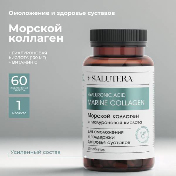 Support your joint health, skin, hair, and nails with Salutera Marine Collagen. This potent supplement combines the power of hydrolyzed marine collagen, hyaluronic acid, vitamin C, and glycine to promote overall wellness. Formulated to strengthen bones, reduce hair breakage and thinning, and combat the visible signs of aging, Salutera helps improve skin elasticity and reduce wrinkles. Suitable for both men and women, this natural vitamin complex supports healthy aging, from stronger joints and ligaments to thicker, more vibrant hair. Our easy-to-swallow capsules contain 900mg of active ingredients per capsule, with a recommended daily intake of two capsules. Salutera is a certified, high-quality dietary supplement – not a drug or powder – making it a thoughtful gift for loved ones of all ages. Maintain your beauty and vitality, naturally.