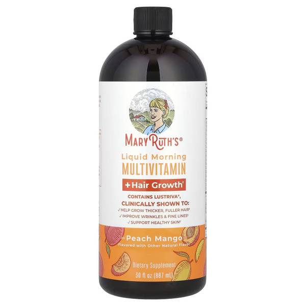 Keywords: Mary Ruth's, liquid multivitamin, hair growth vitamins, peach mango, Lustriva, hair growth supplement, skin health supplement, liquid vitamins, fast absorption, no fillers, BPA free, 887ml, multivitamin, nutritional supplement, healthy hair, healthy skin, wrinkle reduction, fine lines, clinically proven.