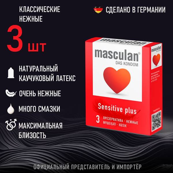 Masculan Sensitive Plus, condoms, lubricated condoms, thin condoms, ultra-thin condoms, classic condoms, pregnancy prevention, STI protection, sex, pleasure, reliable protection, electronic testing, pink condoms, comfortable condoms, natural feel, 3 pack condoms, condom specifications, condom dimensions.