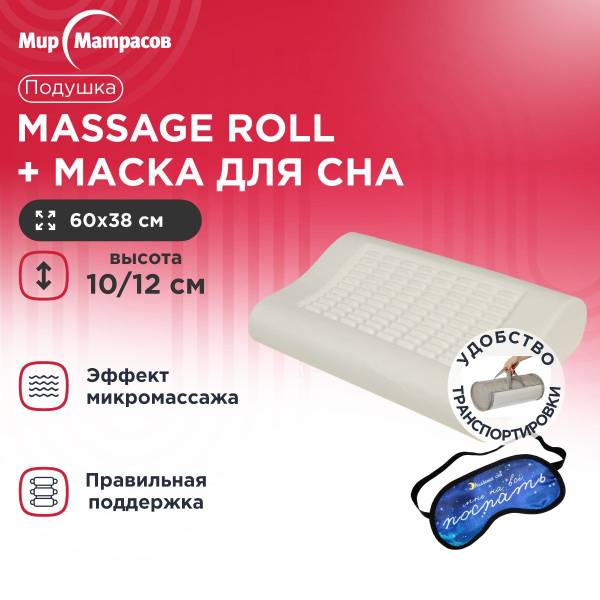 Description: Experience blissful sleep with our medium-firm Memory Foam Massage Roll Pillow and Sleep Mask. Ergonomically designed with dual-height neck rolls and a center indentation featuring soft, rounded cones, this pillow delivers gentle micro-massage throughout the night. Improved circulation and accelerated metabolic processes contribute to healthier, more youthful-looking skin. The breathable, 100% polyester tricot cover enhances comfort. Enjoy rejuvenating sleep and wake up feeling refreshed and revitalized.