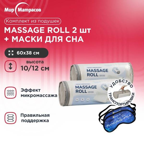 Experience blissful sleep and rejuvenated skin with our luxurious Memory Foam Massage Pillow Set. This set includes two ergonomic pillows, each featuring a medium firmness and innovative design. The pillows boast dual neck rolls in varying heights and a central indentation lined with soft, rounded cones that deliver gentle micro-massage throughout the night. This unique design promotes healthy blood circulation, accelerates cellular turnover, and slows down the aging process, leaving your skin looking firmer and healthier. The ultra-comfortable pillows are encased in a soft, breathable 100% polyester tricot cover, and filled with premium Memory Foam. The set is completed with two plush sleep masks for undisturbed rest. Indulge in superior comfort and wake up feeling refreshed and revitalized.