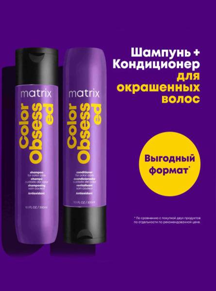 Introducing the new Matrix Color Obsessed professional hair care duo, designed to protect and enhance color-treated hair. This antioxidant-rich system features a shampoo that gently cleanses, preserving vibrant color for up to 32 washes* and preventing pigment fade. Sunflower oil adds softness and manageability. The matching conditioner nourishes and smooths, delivering multi-dimensional shine and effortless detangling. Vitamin E (tocopherol) strengthens hair's natural antioxidant defenses, combating breakage and split ends. Created by hair professionals, Matrix offers simple yet effective solutions for all hair types. Experience professional-quality hair care at home with this convenient duo, available now with up to 10% off. *Based on laboratory testing.