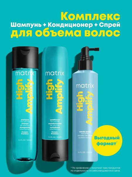 Experience the Matrix High Amplify Volumizing Hair Set, a professional-grade trio designed to dramatically increase hair volume and fullness. The High Amplify Shampoo gently cleanses and lifts fine hair, leaving it bouncy, thick, and visibly denser. Wheat protein strengthens the hair structure for noticeable volume from the first use. This silicone-free formula is perfect for achieving body without weighing hair down.