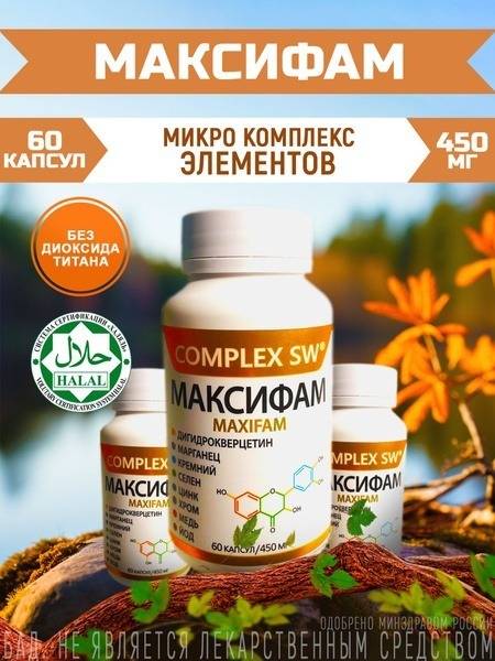 Description: Maxifam provides essential micronutrients from plant sources, including zinc, selenium, manganese, chromium, iodine, copper, and silicon – vital for metabolic processes, immune support, and cellular health. This powerful formula is enhanced with dihydroquercetin, which promotes vascular health and blood flow, and bladderwrack extract (Fucus vesiculosus), a potent immunomodulator with demonstrated antiviral properties (including against herpes). Maxifam is recommended for preventing micronutrient deficiencies, boosting antioxidant levels, and strengthening the immune system. Support your nervous system and overall well-being naturally with Maxifam.