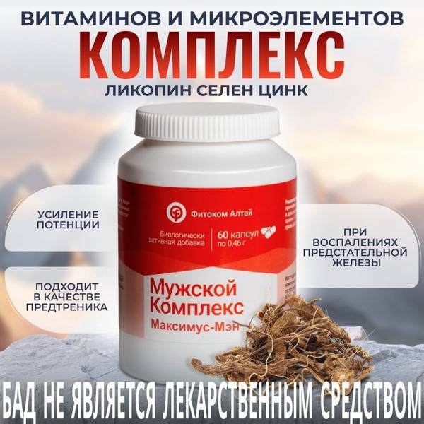 Maximus-Men is a powerful, all-natural herbal supplement formulated to support men's health and overall well-being. This unique blend, crafted from rare endemic plants found in the pristine Altai Mountains, delivers a comprehensive approach to men's wellness.