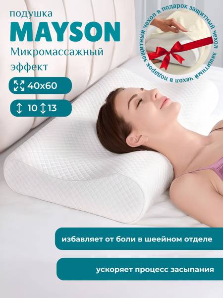 Easy care is ensured with a removable, machine-washable (30°C) cover made from eco-friendly fabric. The pillow's composition includes a knitted cotton cover and a CertiPUR-certified memory foam core, guaranteeing hypoallergenic materials safe for you and the environment. Enhance your sleep and elevate your bedroom or child's room with the ultimate comfort and support of the Mayson Sweet Memory orthopedic pillow.