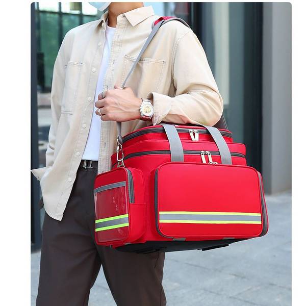 This medical response bag is ideal as an EMT bag, paramedic bag, first aid bag, emergency medical bag, trauma bag, ALS bag, BLS bag, and medical equipment bag. It's perfect for carrying emergency medical supplies, and is suitable for use in mass casualty incident (MCI) situations, as a sporting event medical bag, or as a disaster relief bag. Its customizable and quick-access design, along with its durable construction, makes it a top choice. The bag also easily accommodates an intubation bag, ventilation bag, oxygen tank, and Ambu bag, as well as a toxicology kit bag.