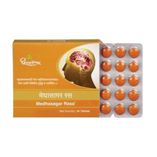 Experience the revitalizing power of Dhootapapeshwar Medhasagar Rasa, a traditional Ayurvedic herbal formulation designed to support cognitive function and promote mental well-being. This 30-tablet pack contains a unique blend of potent herbs carefully selected for their ability to nourish and support the brain.