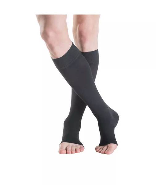 Medi Duomed Class 2 compression socks, open toe. An economical option of therapeutic socks from the GERMAN manufacturer MEDI. Suitable for men and women. Exceptionally durable and dense (helps manage even severe edema, including lymphedema). Patented Clima Fresh knitting technology creates a bacteriostatic effect thanks to incorporated silver ions, maintaining a feeling of freshness all day long. Features a soft, wide waistband for secure, comfortable fit without constriction.