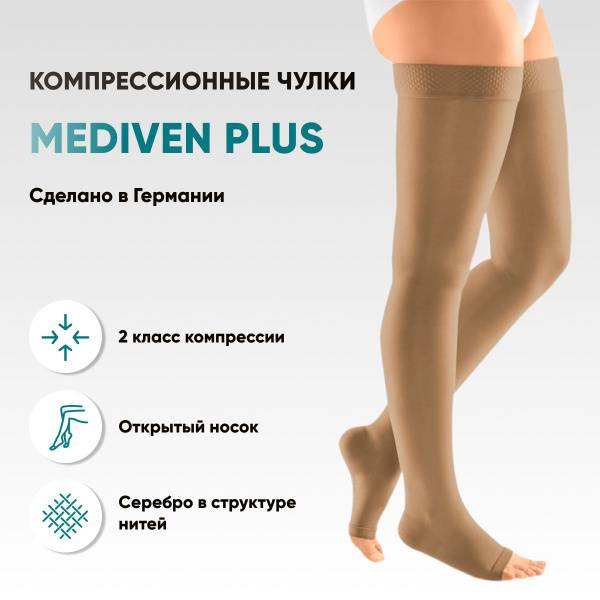 Keywords: Mediven Plus, compression stockings, class 2 compression, varicose veins, venous insufficiency, DVT prevention, pregnancy varicose veins, post-phlebosclerotherapy, medical stockings, compression therapy, beige stockings, silicone band, durable stockings, comfortable stockings, breathable stockings, antibacterial stockings, antifungal stockings, polyamide, elastane.
