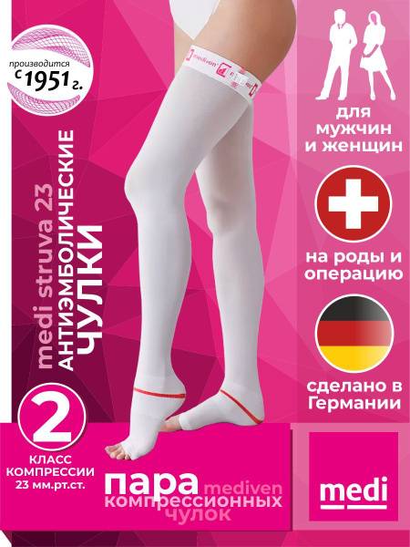 Mediven Struva 23, compression stockings, class 2 compression, medical compression stockings, venous insufficiency, deep vein thrombosis (DVT), post-surgical recovery, phlebectomy, thermal ablation, varicose veins, venous thrombosis prevention, thromboembolic complications (VTE), Medi, Germany, medical grade compression, two-way stretch, breathable, silicone grip, ФСЗ 2011/09660, white compression stockings, compression therapy.
