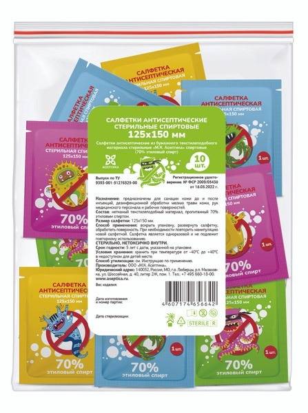 Sterile alcohol wipes for topical antimicrobial and sterilizing use. Ideal for prepping injection sites before subcutaneous and intramuscular injections, instrument disinfection, and surface cleaning. Manufactured to TU 9393-001-51276525-00.