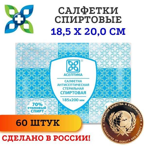 These medical-grade antiseptic alcohol wipes contain 70% ethyl alcohol (highest purity) for effective disinfection. Economical 60-count packaging. Each wipe measures a generous 185x200mm when unfolded. The airtight individual sachet packaging maintains antimicrobial properties for the entire 5-year shelf life. Made from a soft, non-woven material (minimum 35 gsm), these antibacterial wipes leave no fibers behind. Designed for topical use as an antimicrobial, antiseptic, and disinfectant for: preparing injection sites (vaccinations, injections, blood draws); hand hygiene; and surface disinfection. They provide superior sanitation in minimal time, eliminating enveloped viruses within seconds without inducing resistance. Highly effective against gram-negative and gram-positive bacteria, and exhibits fungicidal activity against pathogenic fungi. Suitable for disinfecting everyday items like phones, steering wheels, keys, and doorknobs. Also ideal for sterilizing medical instruments and disinfecting equipment in hair salons, nail salons, and pedicure settings. M.K. Aseptika LLC is the first Russian company to produce alcohol wipes with 70% ethyl alcohol.