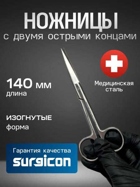 Surgical scissors, surgical instrument, general surgery, reusable scissors, ring handle scissors, curved scissors, surgical tools, autoclavable scissors, medical scissors, Surgicon, Pakistan, 140mm scissors, 52mm cutting length, matte finish, surgical supplies, medical equipment.