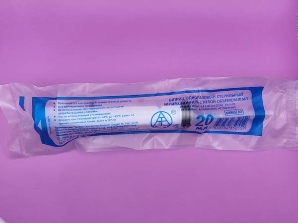 Pack of 5 sterile, disposable 20ml 3-part medical syringes with attached 0.8x40mm needles. Perfect for accurate and safe injections. Ideal for intramuscular injection and suitable for medical professionals. Buy this bulk pack of sterile syringes for your medical needs.
