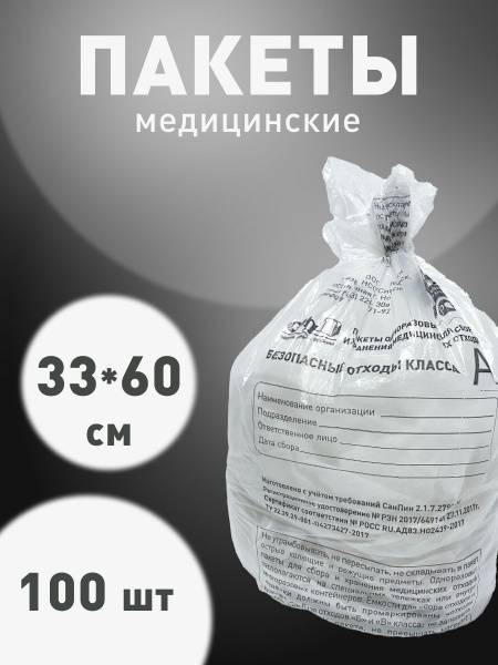 These 100-count, 10-liter white medical waste bags (Class A) are designed for the efficient collection, storage, and transport of non-hazardous medical waste. Measuring 330x600mm (33cm x 60cm), each bag features a convenient labeling area for organization name, department, responsible person, and collection date, eliminating the need for separate labels. The bags are 33cm wide (unfolded), 23cm wide (folded), and constructed with 8µm thick material. Suitable for use in various settings, including laboratories, clinics, hospitals, and cosmetology practices, these bags are perfect for disposing of non-biohazardous waste generated during routine sanitation, everyday operations, and non-infectious materials. These certified bags meet all relevant SanPiN standards and possess registration certificates. While sold without ties or labels (available separately), they are ideal for holding waste from general cleaning or non-biohazardous material. We also offer Class B (yellow), C (red), and D (black) medical waste bags to meet all your disposal needs. Choose the right bag for your waste type and ensure compliant, safe waste management.