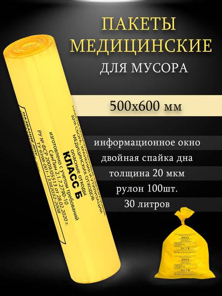 Keywords: Medical waste bags, Class B waste bags, infectious waste bags, medical waste disposal, healthcare waste bags, yellow waste bags, 500x600mm waste bags, double-bottom seam waste bags, Russian medical waste bags, registered medical device, single-use waste bags, potentially infectious waste, pathological waste bags, surgical waste bags, infection control, waste disposal bags, 100 pack waste bags, medical waste management, hospital waste bags, clinical waste bags.