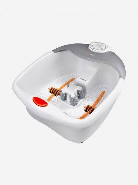 Experience the ultimate foot pampering with the Medisana FS 885 foot spa. This 5-in-1 system combines invigorating bubble and vibration massage, soothing red light therapy, targeted heat, and rotating massage rollers for deep tissue stimulation. Enjoy customizable water heating (20-48°C), a programmable timer (20/30/40/50/60 minutes), and a user-friendly digital display. Removable massage rollers, air bubble jets, and excellent double-walled insulation ensure a comfortable and effective massage experience. Suitable for shoe sizes up to EU 46. Relax and rejuvenate your feet with the Medisana FS 885.