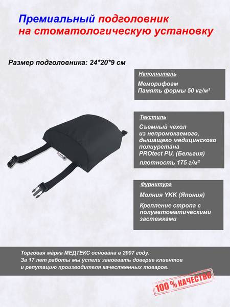 Description: Experience superior patient comfort with the MEDTEX Dental Headrest (Model 122). This 20x24 cm memory foam headrest provides exceptional cervical support, reducing strain and enhancing the overall dental experience. Its unique anatomical design incorporates ventilation channels for breathability and optimal support. The high-density (50 kg/m³) memory foam conforms to the patient's body temperature and weight, ensuring personalized comfort. Secure and easy attachment is guaranteed with integrated straps and quick-release fasteners (fastex buckles), compatible with most dental chairs. Choose the MEDTEX Dental Headrest for unparalleled comfort and patient satisfaction.