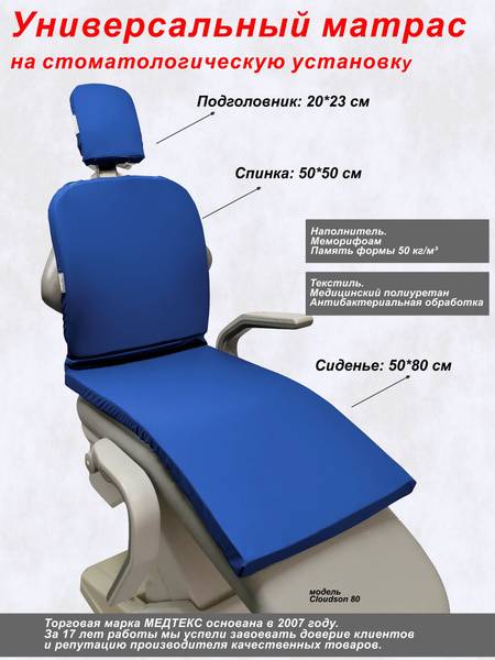 dental chair mattress, dental mattress, memory foam mattress, dental chair cover, dental upholstery protection, MEDTEX, Russian made dental mattress, comfortable dental mattress, 50x153cm mattress, dental chair accessories, dental practice supplies, memory foam, dental patient comfort.